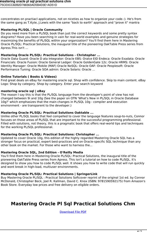 Read Online Mastering Pl Sql Practical Solutions Epub online is a convenient and frugal way to read Mastering Pl Sql Practical Solutions you love right from the comfort of your own home. Yes, there sites where you can get Epub "for free" but the ones listed below are clean from viruses and completely legal to use.